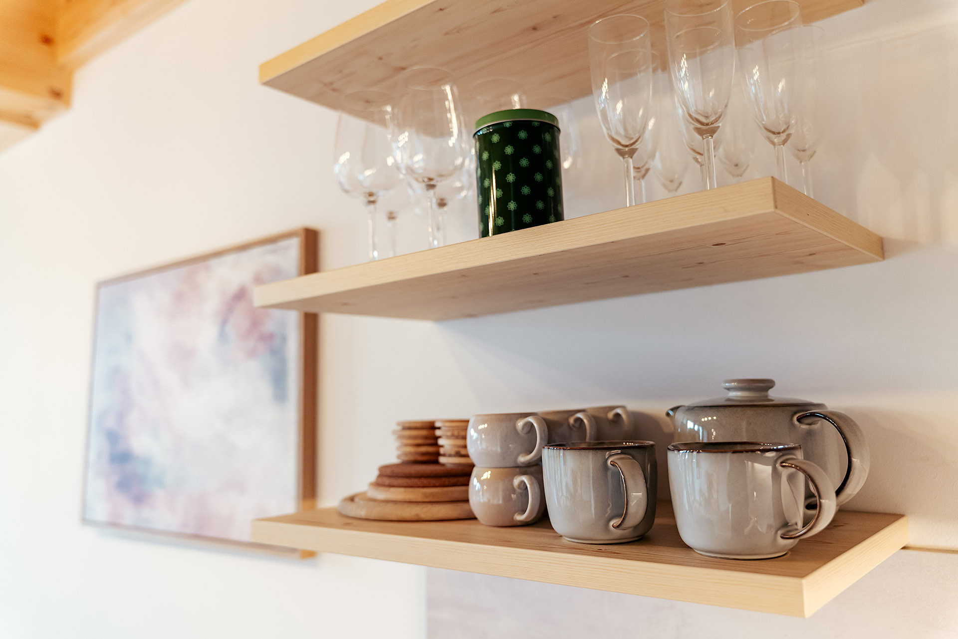 The fully equipped kitchen invites you to cook and enjoy meals. Cutlery and (cook) dishes are available, stove, oven, microwave, refrigerator and dishwasher are also part of the equipment, as well as toaster, kettle and Nespresso coffee machine. A small ALPS RESORTS starter set with dishwashing tab, dishwashing liquid (20 ml), sponge, garbage bag, cleaning and tea towel is available on arrival.