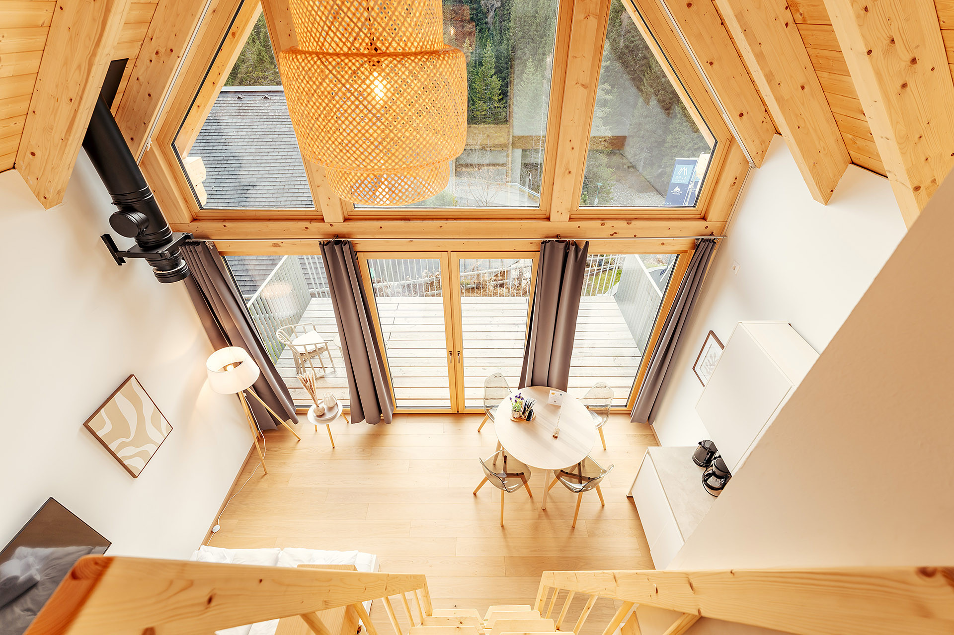 The two-story chalet offers 45 m² of space for up to 2 adults and 2 children. Equipped with 1 sofa bed for to persons on the ground floor and 1 single bed with pull-out drawer in the attic, the accommodation has 1 bathroom with shower and toilet.