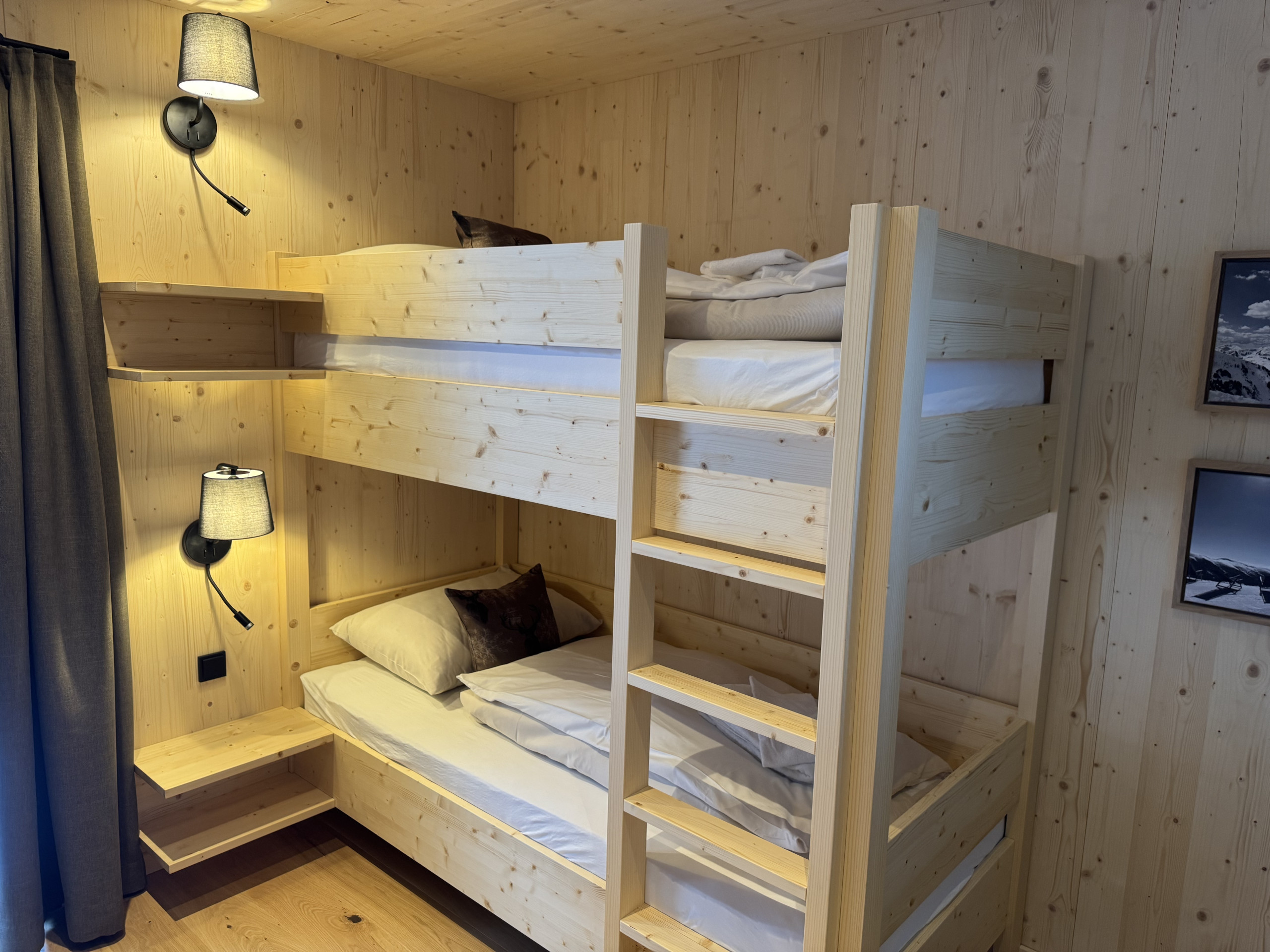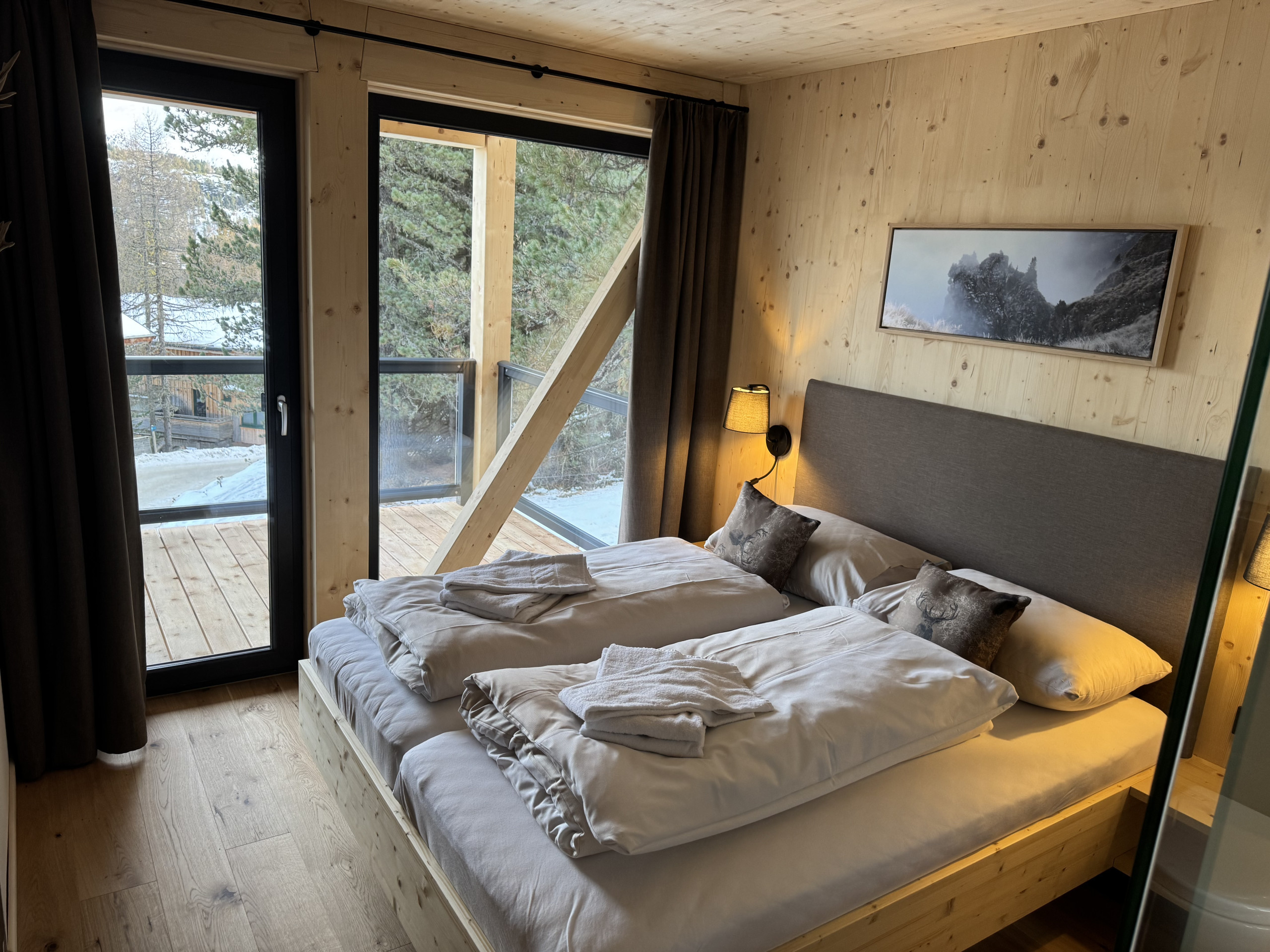 • Solid Wood & Stone Pine Construction: Feel the cosy warmth and fine fragrance of natural woods – for deep sleep, well-being and a good conscience. Sustainably built and Green Award-awarded – where alpine charm meets stylish elegance.