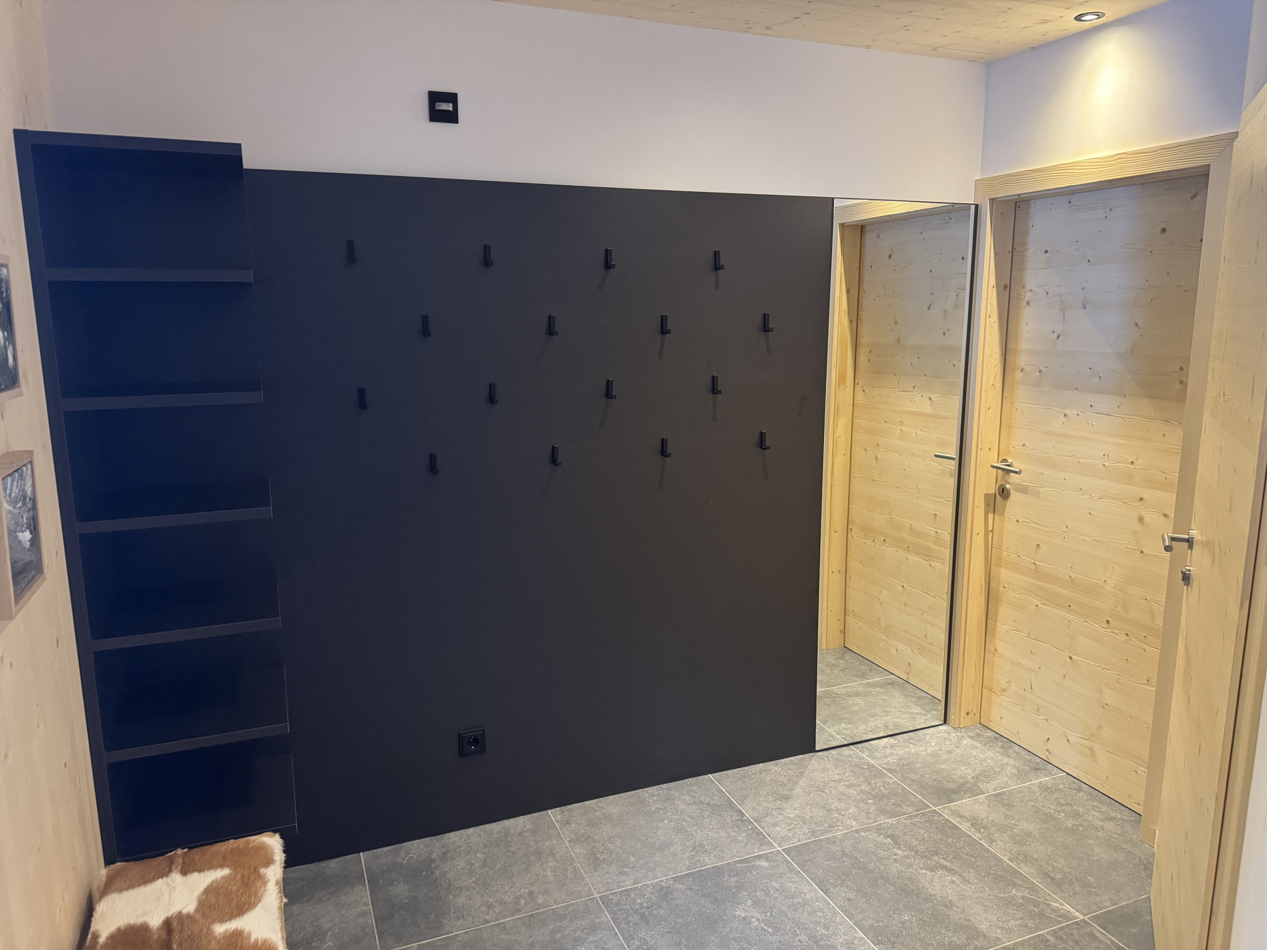 Experience pure relaxation in your private Finnish sauna or in the hot tub without whirlpool function on the terrace, while enjoying the breathtaking view of the surrounding mountain landscape. Some bedrooms even open onto balconies that look directly into the stone pine forest – a place where you can let your soul dangle.
