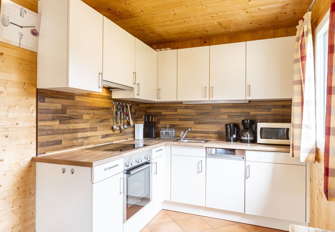 The fully equipped kitchen invites you to cook and enjoy together. Cutlery and (cook) dishes are available, stove, oven, microwave, refrigerator and dishwasher are also part of the equipment, as well as toaster, kettle and coffee machine. A small ALPS RESORTS starter set including dishwasher tab, dishwasher detergent (sample size), sponge, trash bag, cleaning cloth and dishcloth is provided for you upon arrival.