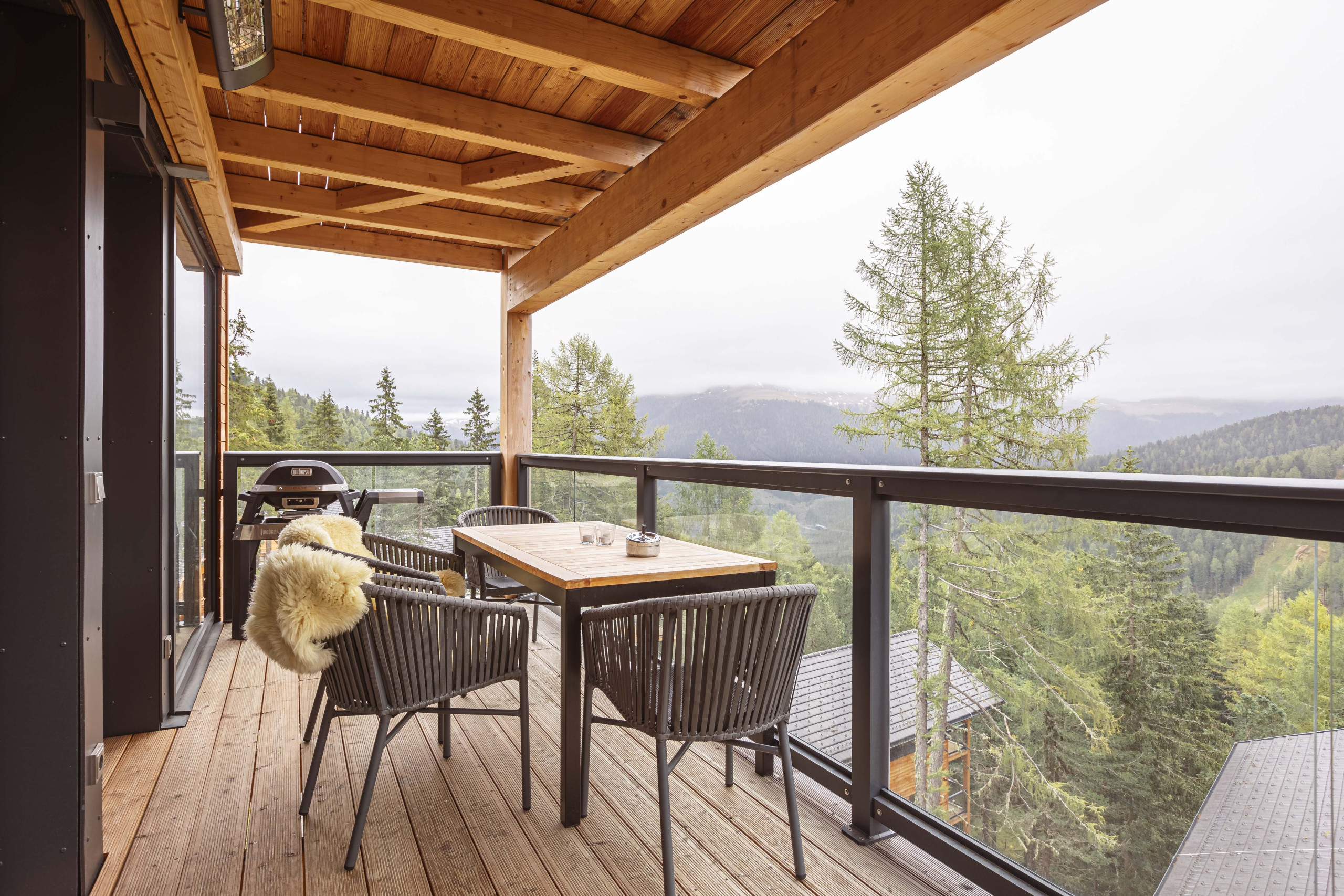 Experience pure relaxation in your private Finnish sauna or in the hot tub without whirlpool function on the terrace, while enjoying the breathtaking view of the surrounding mountain landscape. Some bedrooms even open onto balconies that look directly into the stone pine forest – a place where you can let your soul dangle.
