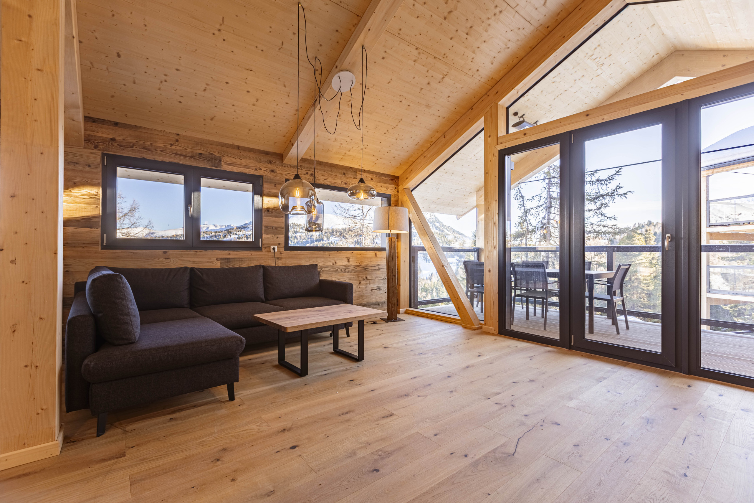 Immerse yourself in a world of solid wood, stone pine wood, and alpine tranquillity. The nature chalets spread over two floors offer space for up to 8 people on generous 135 m² - perfect for families, friends, or romantic getaways.