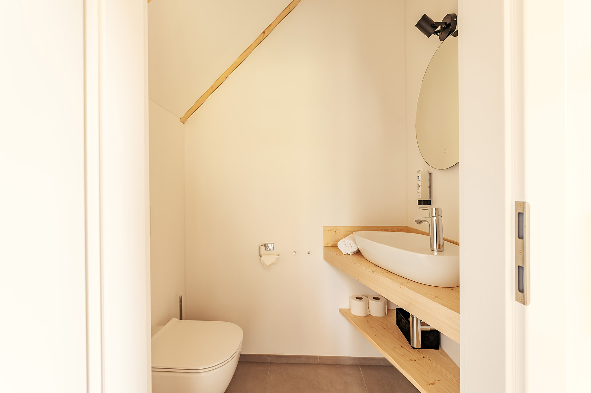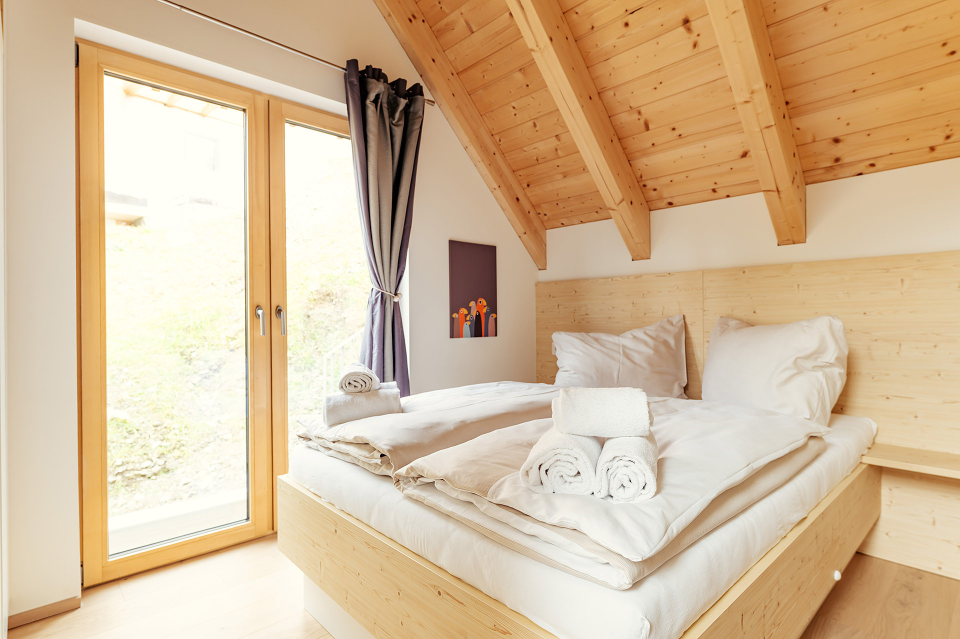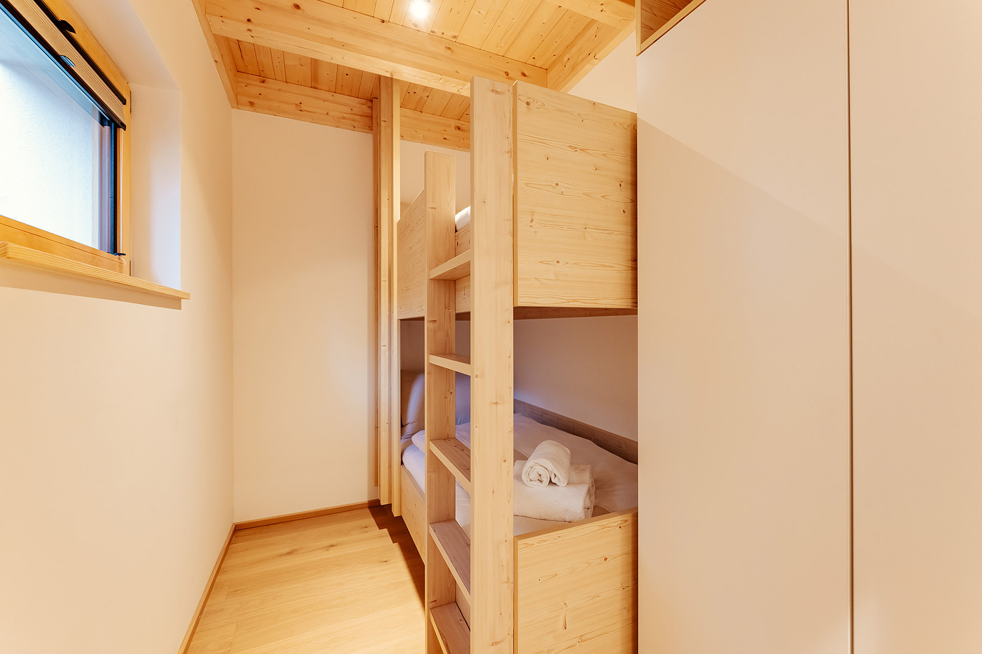 De tweeverdiepingenchalet biedt voldoende ruimte voor maximaal 8 personen op een leefoppervlakte van 80 m². Het heeft 2 slaapkamers met tweepersoonsbedden en 1 slaapkamer met een stapelbed. In de leefruimte zijn nog eens 2 slaapplaatsen beschikbaar. Voor maximaal comfort biedt de chalet ook 2 badkamers met douches en een apart toilet.