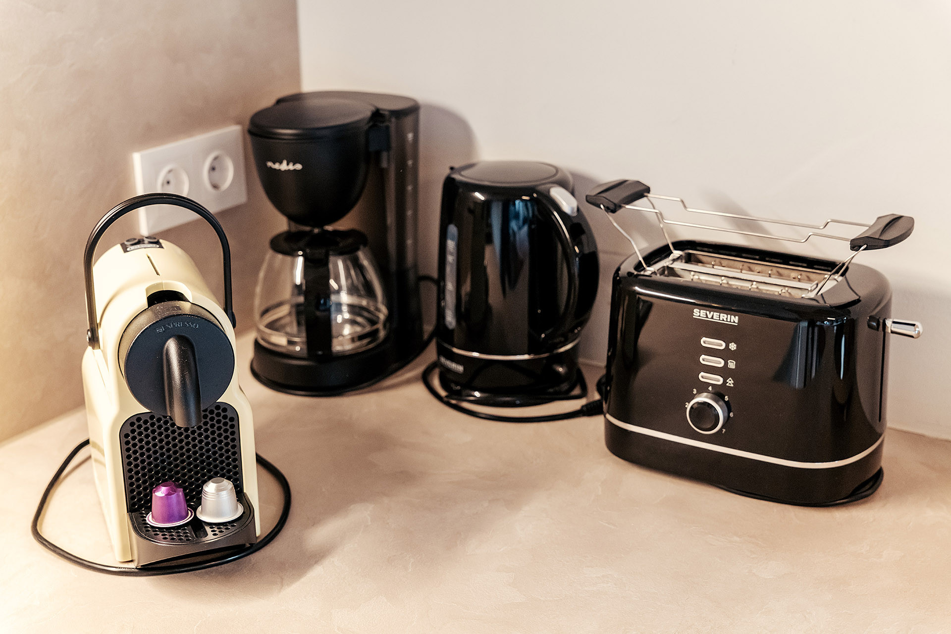 De volledig uitgeruste keuken nodigt je uit om te koken en te genieten van maaltijden. Bestek en (kook)borden zijn aanwezig, fornuis, oven, magnetron, koelkast en vaatwasser behoren ook tot de uitrusting, evenals broodrooster, waterkoker en Nespreso koffiezetapparaat. Een kleine ALPS RESORTS startset met vaatwastablet, afwasmiddel (20 ml), spons, vuilniszak, schoonmaak- en theedoek is beschikbaar bij aankomst.