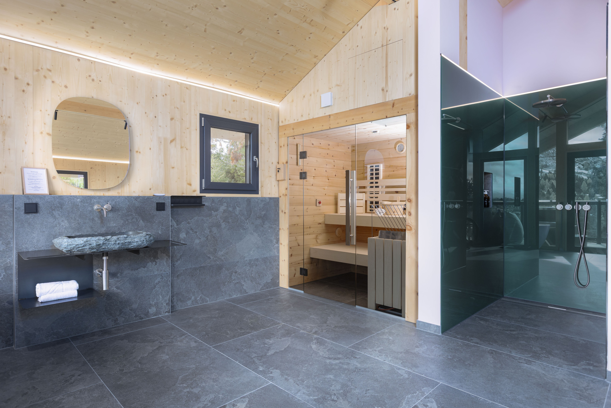 Met gourmetkeuken, roestvrij stalen zwembad, sauna en de stille kracht van de zirbe.