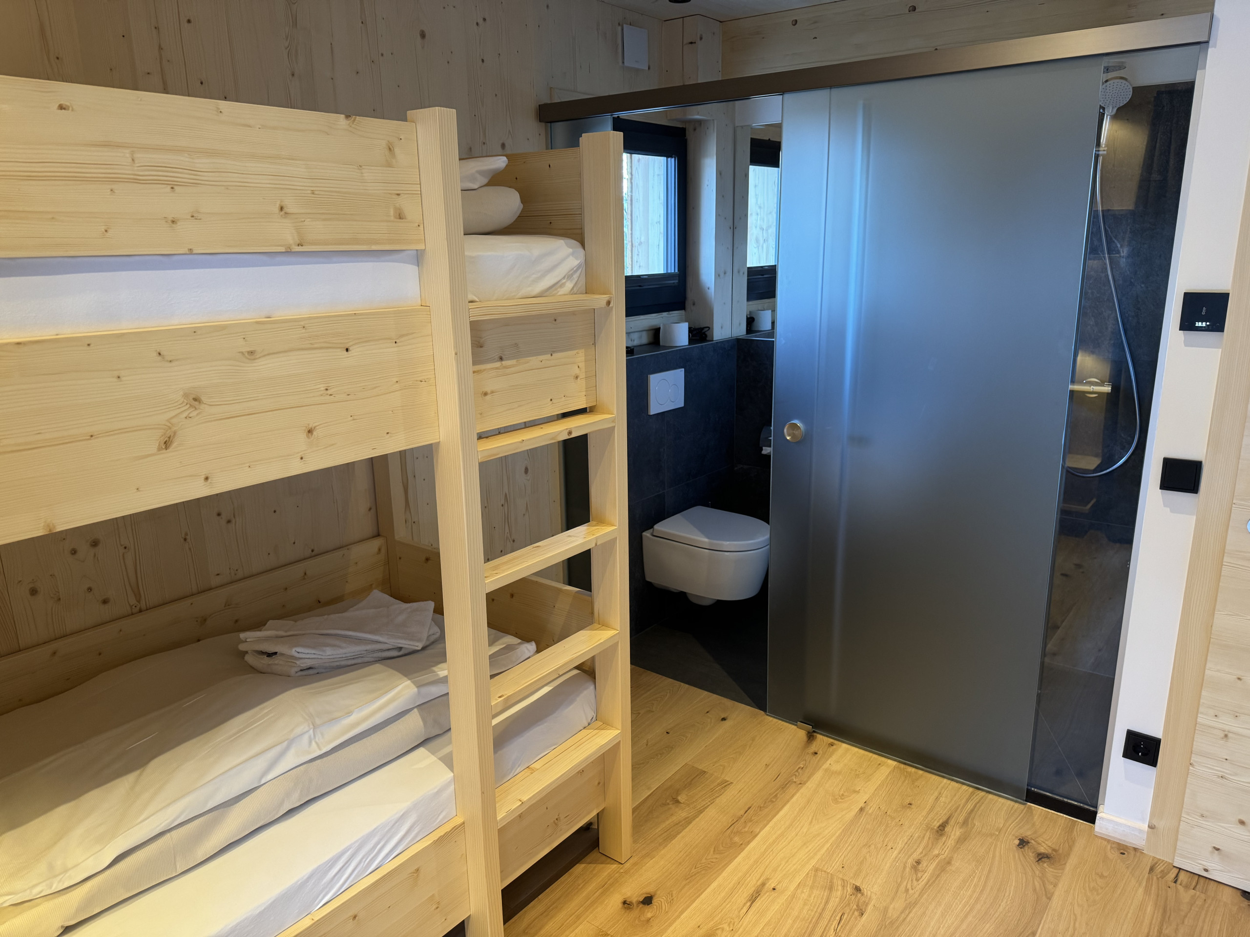 • Massief hout- & zirbenhouten constructie: Voel de gezellige warmte en de fijne geur van onbewerkt hout – voor diepe slaap, welzijn en een goed geweten. Duurzaam gebouwd en bekroond met de Green Award – waar alpijnse charme samenkomt met stijlvolle elegantie.