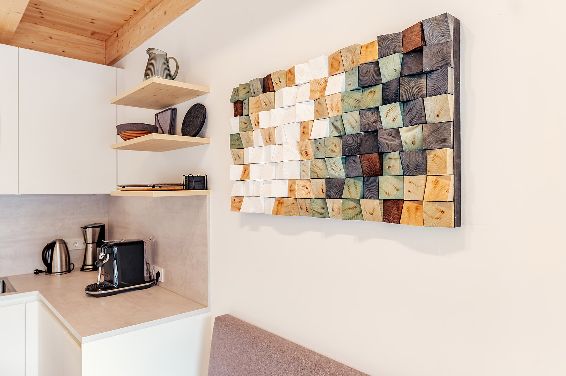 Die voll ausgestattete Küche lädt zum gemeinsamen Kochen und Genießen ein. Besteck und (Koch-) Geschirr ist vorhanden, Herd, Backofen, Mikrowelle, Kühlschrank und Geschirrspüler gehören ebenso zur Ausstattung wie Toaster, Wasserkocher und Nespresso Kaffeemaschine. Ein kleines ALPS RESORTS Starterset mit Geschirrspültab, Geschirrspülmittel (20 ml), Schwämmchen, Müllbeutel, Putz- und Geschirrtuch steht bei der Anreise bereit.