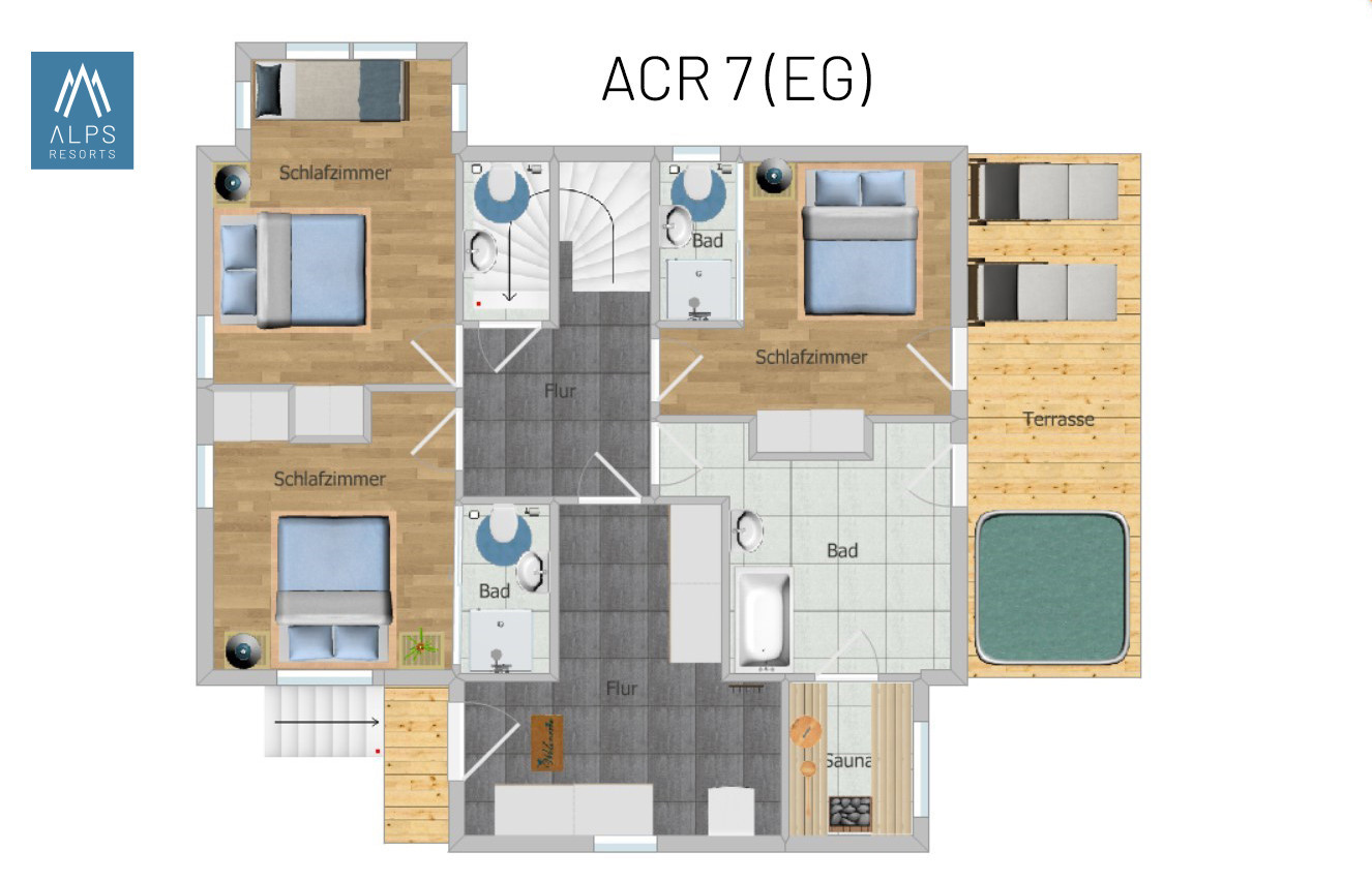 Dieses Premium Chalet mit Sauna & Whirlpool außen bietet auf 120 m² Wohnfläche Platz für bis zu 9 Personen. Das Chalet verfügt über 4 Schlafzimmer, 4 Badezimmer mit Dusche und 2 möblierte Balkone. Zu den Annehmlichkeiten gehört auch eine Sauna. Sie schlafen in 4 Doppelbetten. Eines der Schlafzimmer verfügt zusätzlich über 1 Einzelbett.