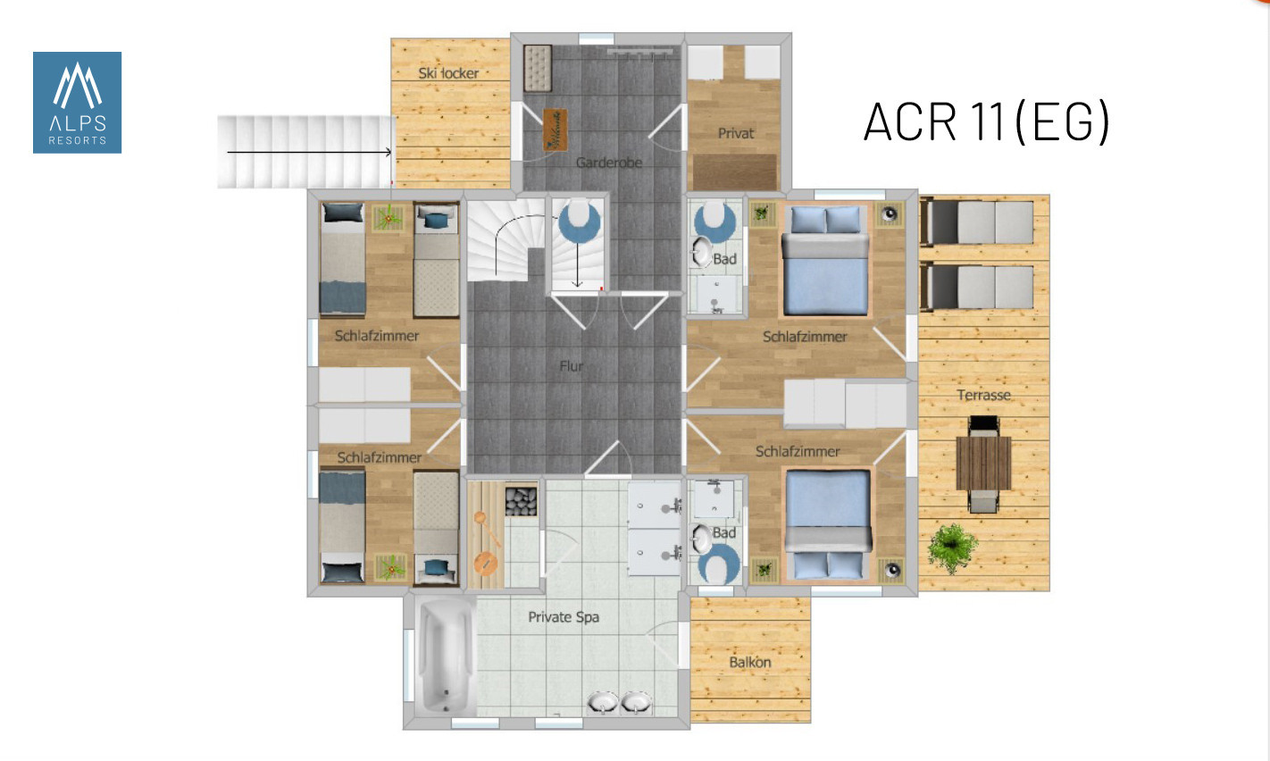 Auf stilvollen 120 m² Wohnfläche bietet dieses Superior Chalet Platz für bis zu 10 Personen. Das Superior Chalet verfügt über 4 Schlafzimmer, 4 Badezimmer mit Dusche und 1 Badezimmer mit Badewanne und Infarot Sauna. Sie schlafen in 3 Doppelbetten. Eines der Schlafzimmer verfügt über 2 Etagenbetten. Der Ausblick von den beiden Balkonen wird Sie ins Staunen bringen.