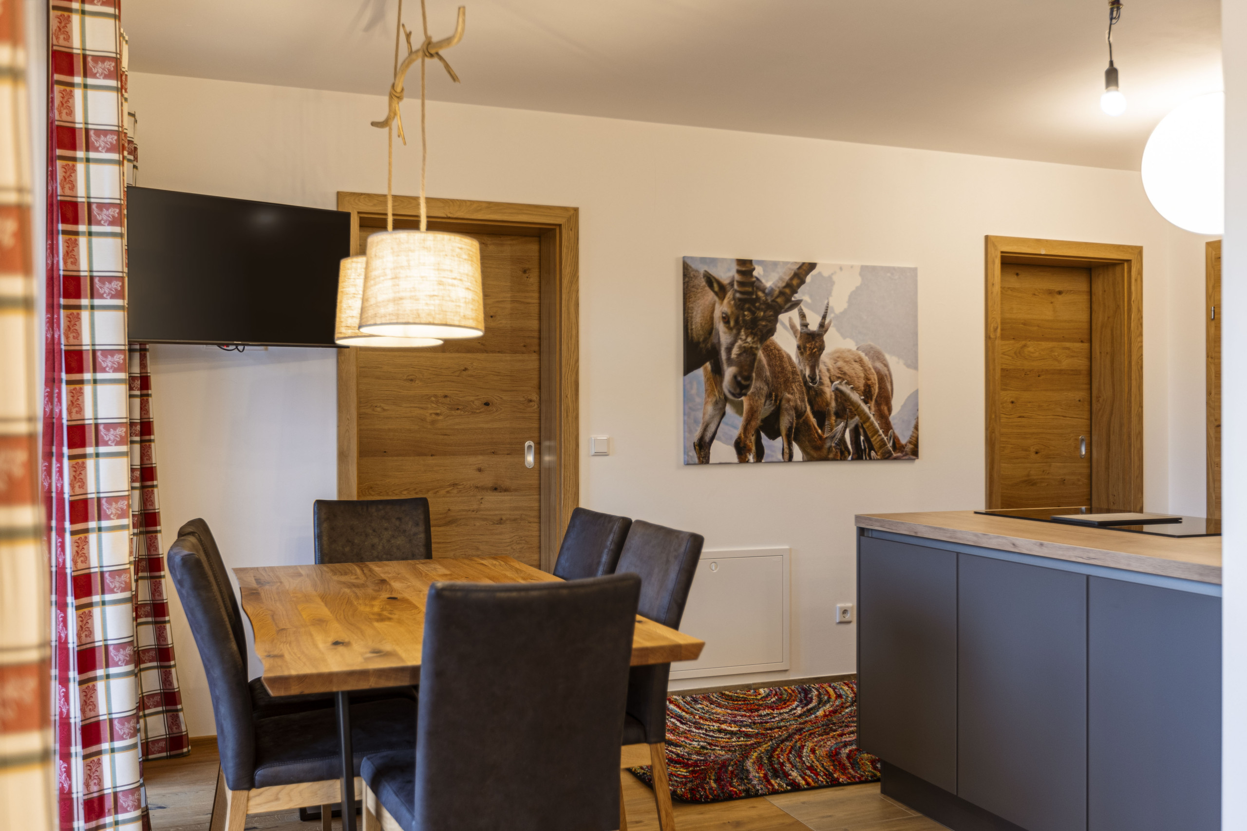 Die offene Küche ist voll ausgestattet und bietet alles, was Sie für gemeinsame Kochmomente brauchen: Cerankochfeld, Backofen, Geschirrspüler, Kühlschrank mit Gefrierfach, Toaster, Wasserkocher, Kaffeemaschine sowie Geschirr und Besteck. Zur Begrüßung erwartet Sie ein kleines ALPS RESORTS Starterset mit praktischen Kleinigkeiten für den Alltag.