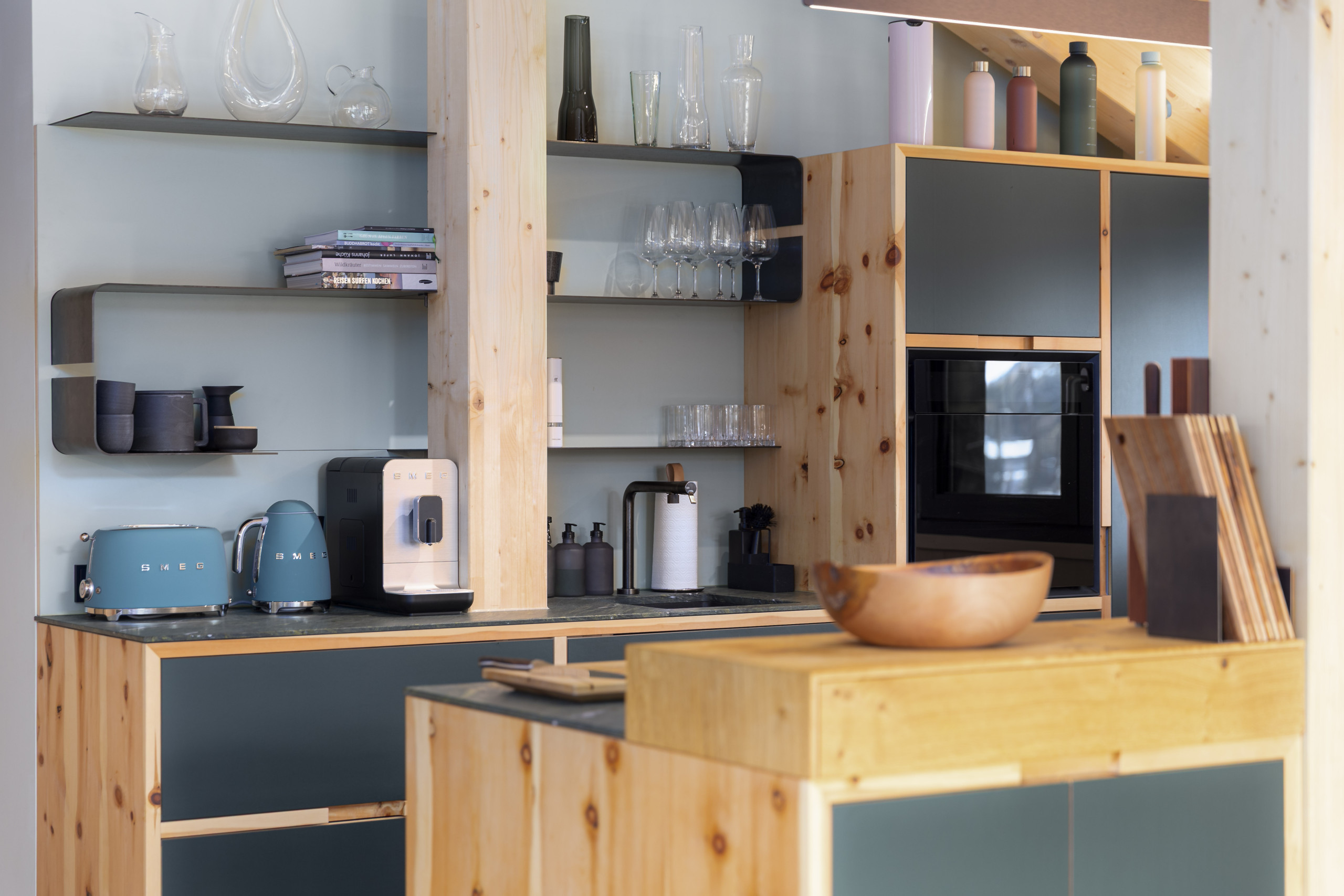 • Reduzierter Stil mit Designklassikern & viel unbehandelter Zirbe