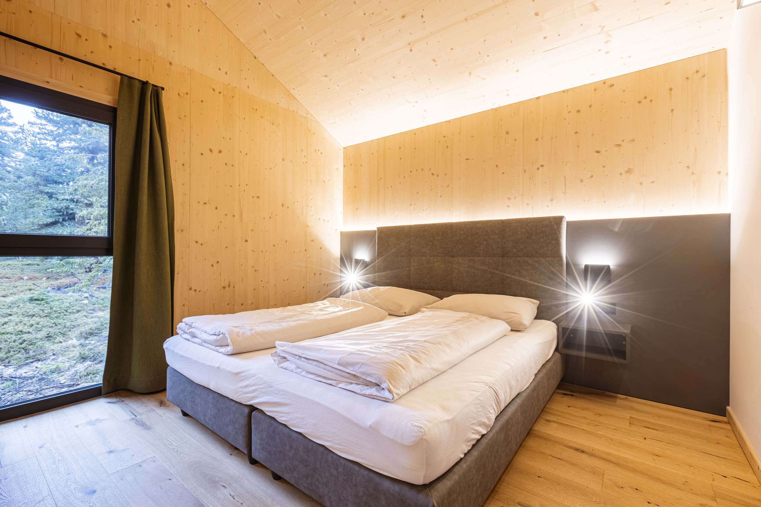 Tauchen Sie ein in eine Welt aus Massivholz, Zirbenholz und alpiner Ruhe. Auf großzügigen 135 m² bieten die Naturchalets auf zwei Etagen Platz für bis zu 8 Personen – perfekt für Familien, Freunde oder romantische Auszeiten.