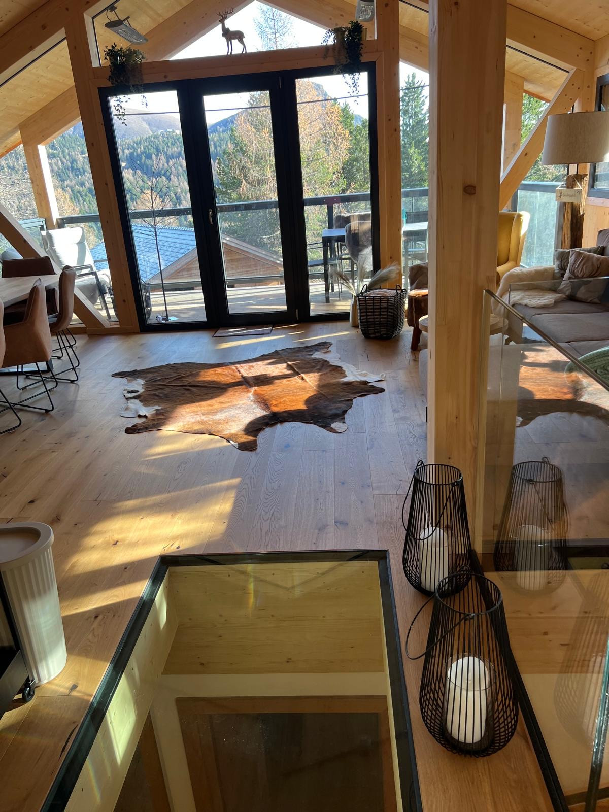 Tauchen Sie ein in eine Welt aus Massivholz, Zirbenholz und alpiner Ruhe. Auf großzügigen 135 m² bieten die Naturchalets auf zwei Etagen Platz für bis zu 8 Personen – perfekt für Familien, Freunde oder romantische Auszeiten.