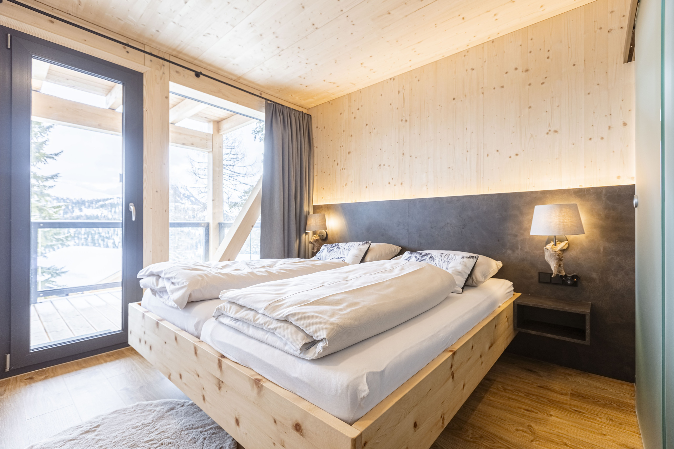 Erleben Sie pure Entspannung in Ihrer privaten finnischen Sauna oder im Hot Tub ohne Whirlfunktion auf der Terrasse, während Sie den atemberaubenden Blick auf die umliegende Bergwelt genießen. Einige Schlafzimmer öffnen sich sogar auf Balkone, die direkt in den Zirbenwald blicken – ein Ort, an dem Sie die Seele baumeln lassen können.