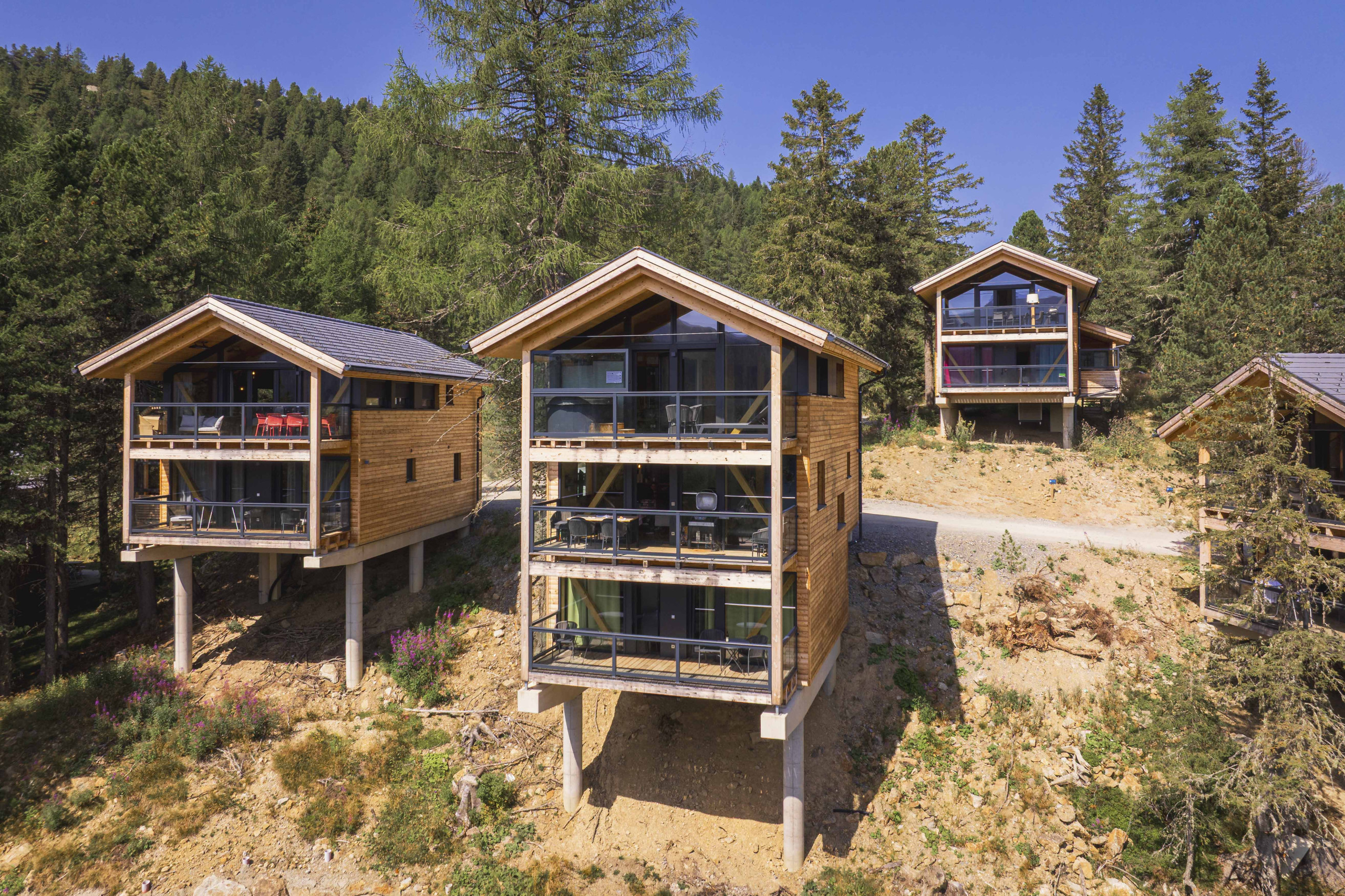 Tauchen Sie ein in eine Welt aus Massivholz, Zirbenholz und alpiner Ruhe. Auf großzügigen 135 m² bieten die Naturchalets auf drei Etagen Platz für bis zu 8 Personen – perfekt für Familien, Freunde oder romantische Auszeiten.